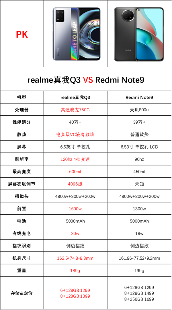 此外,realme真我Q3的前置鏡頭像素達(dá)到了1600萬,紅米Note9的前置鏡頭像素只有1300萬,雖然差距不算大,但1300萬像素已經(jīng)是不能更低的百元機(jī)水準(zhǔn)了,將紅米Note9的檔次拉低了不少。