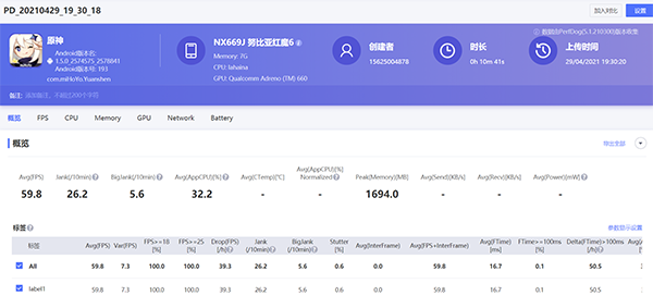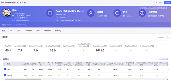 最后我們還體驗(yàn)了被稱(chēng)為「烤機(jī)手游」的《原神》,這款二次元精美大作對(duì)手機(jī)的配置要求較高。運(yùn)行過(guò)程中幀率表現(xiàn)各有不同,其中ROG游戲手機(jī)5的平均幀率在60.1幀,紅魔6則是在59.8幀,對(duì)比之下ROG依舊優(yōu)化得要更為到位,運(yùn)行過(guò)程中幀率較為穩(wěn)定,全程幀率波動(dòng)范圍也較小。