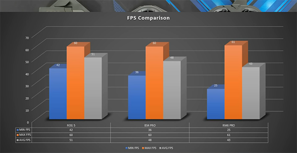 而具體到實(shí)際游戲體驗(yàn)的幀率表現(xiàn)來看,ROG游戲手機(jī)5全程平均幀率維持在51FPS,是三款游戲手機(jī)中幀率最高的,黑鯊4 Pro的幀率表現(xiàn)緊隨其后,全程平均幀率為48FPS,而紅魔6 Pro的平均幀率表現(xiàn)最低,為41FPS。相比之下,ROG游戲手機(jī)5在幀率的穩(wěn)定性和游戲的適配性方面更勝一籌。