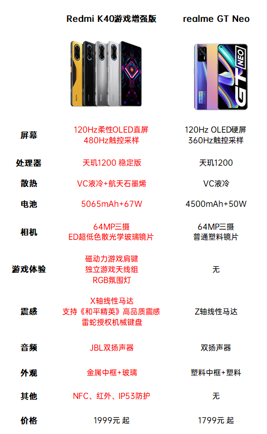 從上圖的參數(shù)對比來看,明顯是Redmi游戲手機更加強大。價格方面的話相差不大!
