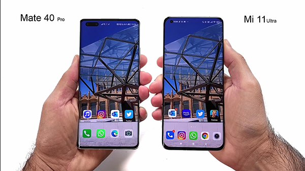 從屏幕的顯示效果來看,顯然小米11 Ultra要更勝一籌,但是屏幕雙曲面的曲面度效果方面,華為Mate40 Pro則更明顯。