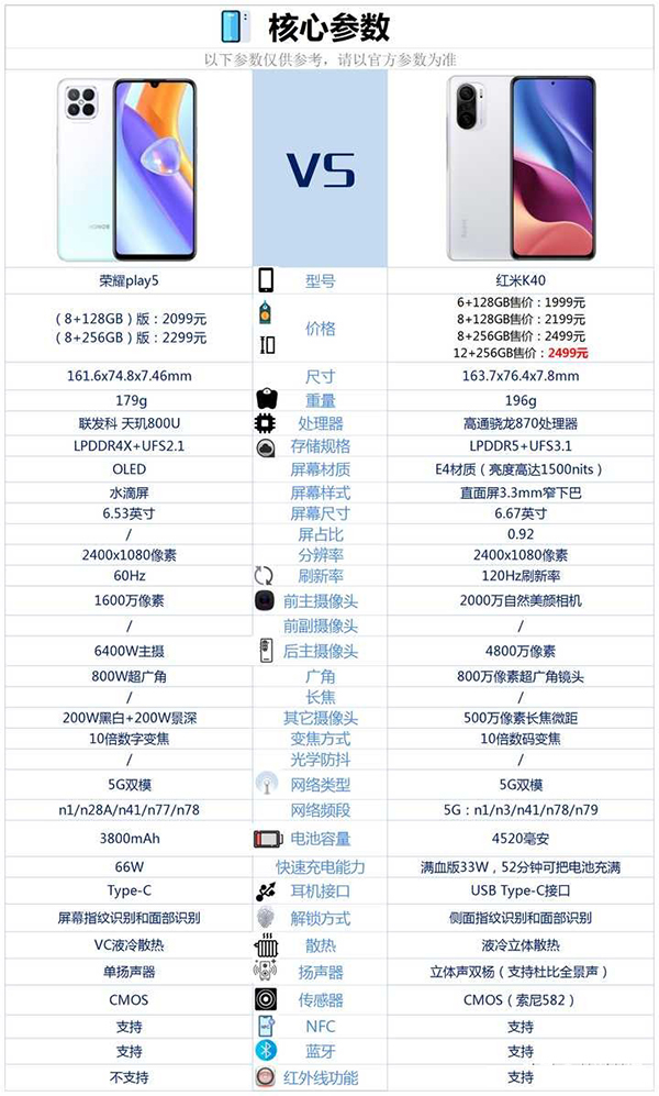 首先小編想要表達的觀點,就是如果單純從性價比角度來說,榮耀play5這款手機是完全不如紅米K40這款手機的。如果大家在購買手機的過程當(dāng)中,追求的是極致性價比,那么選擇榮耀play5這款手機才是最好的。不過話又說回來,每個人在選擇手機的時候,因為看重的東西是不一樣的,那么做出的購機選擇也是會存在差異的。所以小編接下來就根據(jù)大多數(shù)人的需求,給到大家不同的購機建議,希望能夠幫助到大家。