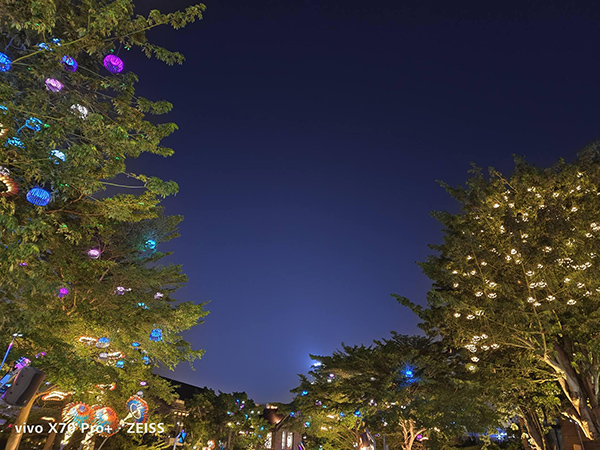 通過(guò)下面的夜景對(duì)比樣張可以看到,vivo X70 Pro+和華為P50 Pro的成像效果略有差異。前者所拍的樣張?jiān)诎挡考?xì)節(jié)的提亮上做得很到位,色彩表現(xiàn)真實(shí)艷麗,天空畫面很純凈,整體觀賞性極佳;后者所拍樣張的整體細(xì)節(jié)不輸前者,不過(guò)畫面更亮一些,出現(xiàn)了一定的色偏,色彩看起來(lái)比較淡。經(jīng)過(guò)對(duì)比可以看到,vivo X70 Pro+所拍的夜景樣張要更討好人們的眼球。