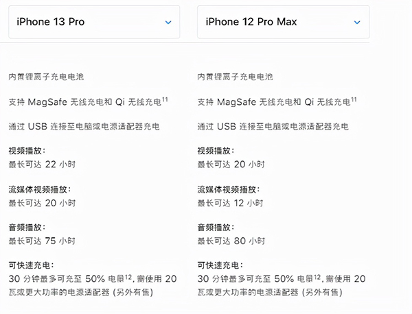 雖然13 Pro的電池容量沒有12 pro max多,但是由于13 Pro搭載使用的IOS 15系統(tǒng)也對(duì)于ProMotion技術(shù)進(jìn)行了優(yōu)化,所以13 Pro在續(xù)航這方面時(shí)長(zhǎng)是要比12 pro max要高的。