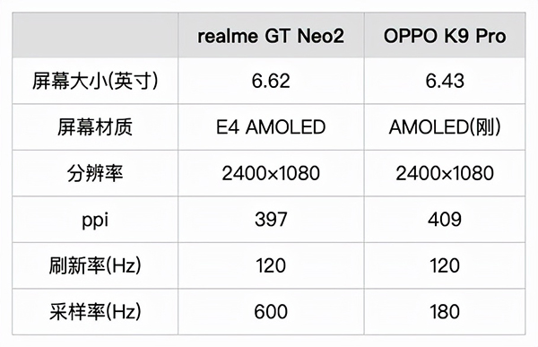 屏幕方面,尺寸上有一些區(qū)別,GT Neo2要大一圈,觀看效果略好一些,而K9 Pro機(jī)身小一些,握持操作更方便。
