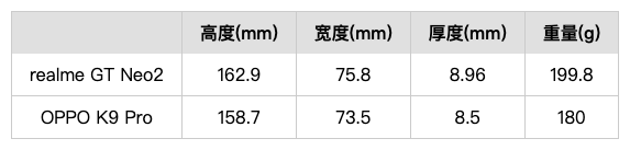 機(jī)身對(duì)比,左GT Neo2,右K9 Pro