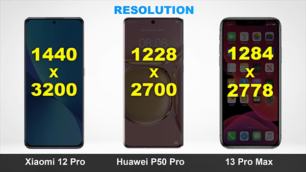 小米12 Pro、華為P50 Pro、iPhone 13 Pro Max的屏幕分辨率分別為,1440X3200像素、1228X2700像素、1284X2778像素,這三部手機(jī)中只有小米12 Pro的屏幕分辨率達(dá)到了2K級(jí)別,華為P50 Pro和iPhone 13 Pro Max的屏幕分辨率均沒(méi)有達(dá)到2K。