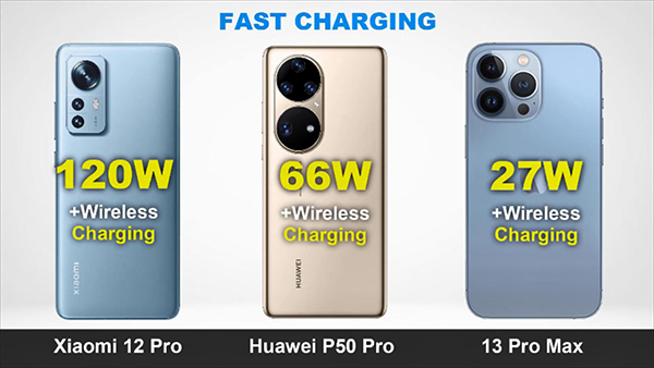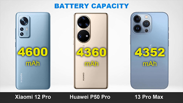 在電池的配置上,小米12 Pro、華為P50 Pro、iPhone 13 Pro Max分別搭載了4600毫安、4360毫安和4352毫安的電池,并且分別支持120W有線、66W有線和27W的有線快充,當(dāng)然這三部旗艦手機(jī)也都支持無(wú)線充電技術(shù)。