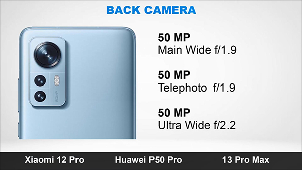 在硬件參數(shù)方面,小米12 Pro、華為P50 Pro、iPhone 13 Pro Max分別搭載了驍龍8Gen1處理器、驍龍888處理器和A15仿生處理器。令人遺憾的是,華為P50 Pro不支持5G網(wǎng)絡(luò),而小米12 Pro和iPhone 13 Pro Max支持5G網(wǎng)絡(luò)。