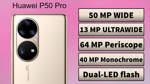 華為P50 Pro搭載的相機鏡頭組合,為5000萬像素原色(彩色)鏡頭+4000萬像素原色(黑白)鏡頭+1300萬像素超廣角鏡頭+6400萬像素長焦鏡頭,華為P50 Pro在相機拍照方面一直都是強項。