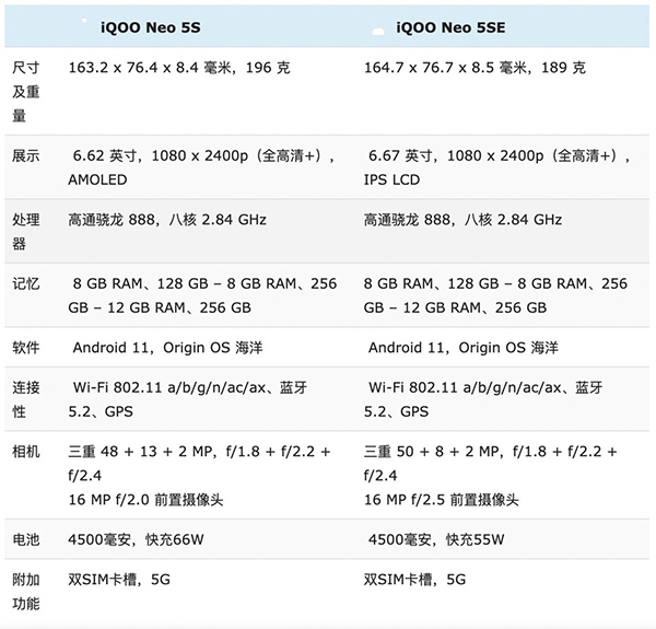 iQOO Neo5S與iQOO Neo5 SE參數(shù)對比圖如下,優(yōu)缺點很明顯