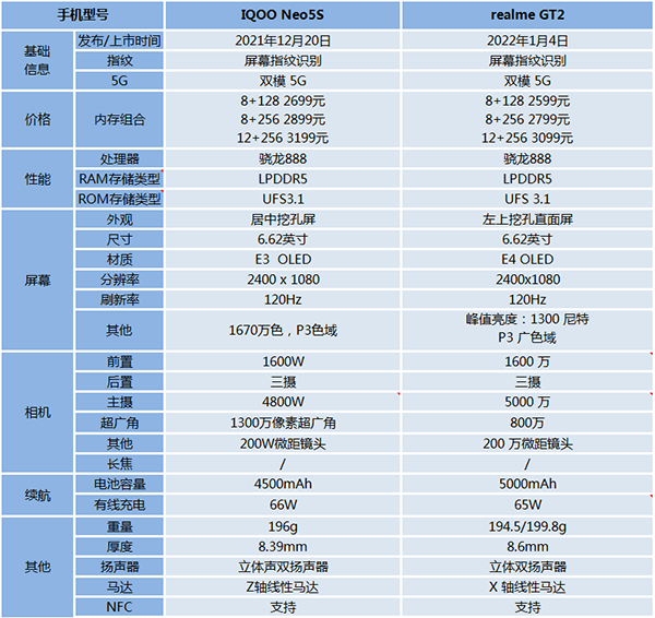 realme真我GT2和iQOO Neo5S參數(shù)圖: