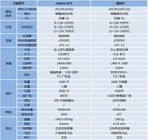 realme真我GT2和一加9RT都是驍龍888處理器的鐵三角組合,主要區(qū)別在散熱上。