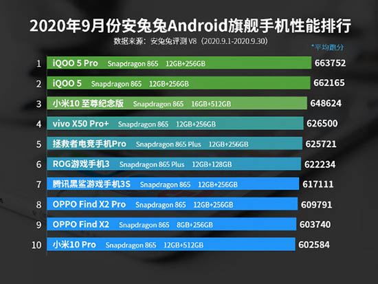安兔兔正式公布了2020年9月份Android旗艦/中端手機(jī)性能榜單,為廣大購(gòu)機(jī)用戶提供了一個(gè)參考標(biāo)準(zhǔn)。從榜單來看,在旗艦手機(jī)性能榜單中,iQOO 5 Pro和iQOO 5憑借超66萬的跑分一路領(lǐng)跑,性能強(qiáng)勁可見一斑;在中端手機(jī)性能榜單中,Redmi 10X Pro 5G和Redmi 10X 5G則是以超39萬分的跑分領(lǐng)跑。