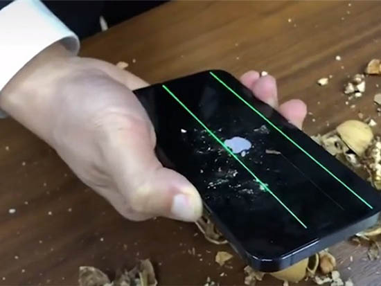 可以看到,該網(wǎng)友在用iPhone 12 Pro砸了幾個(gè)核桃之后外屏的確完好無損,但在開機(jī)后屏幕隨即出現(xiàn)了綠線。因此希望大家在拿到手機(jī)后還是要愛惜使用,不要輕易進(jìn)行這種類似的嘗試。
