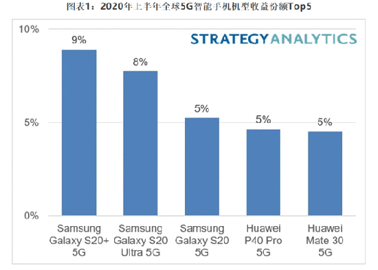 同樣是國(guó)產(chǎn)手機(jī)巨頭的華為,則在該榜單中占據(jù)兩席位置,華為P40Pro、華為Mate30 5G分別上榜。其中華為P40 Pro排名第四,占5G智能手機(jī)總收益的5%。眾所周知,華為因?yàn)槊绹?guó)的制裁,手機(jī)產(chǎn)品缺失了谷歌GMS服務(wù),在海外銷售遇阻。