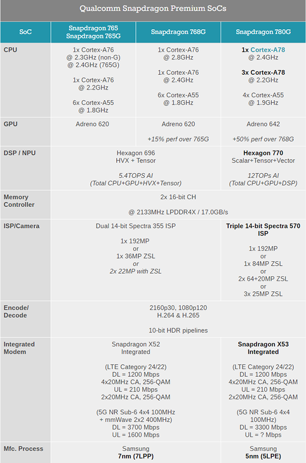 近日,高通正式發(fā)布了新一代中高端芯片驍龍780G,其采用三星5nm工藝打造,在性能和多媒體功能方面進(jìn)行了大幅度升級:升級了全新的A78架構(gòu),大核數(shù)量增加了一倍,并且大幅提高了GPU性能,同時采用了AI性能翻倍的Hexagon 770和支持三攝并發(fā)的Spectra 570 ISP。