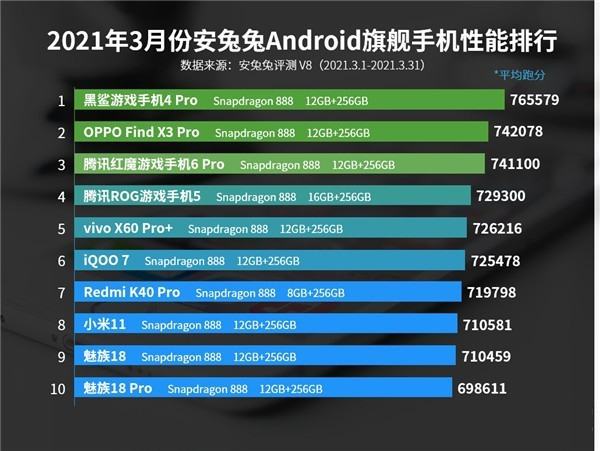 眾所周知3月份是全年旗艦手機發(fā)布最多的一個月之一,目前多款新機都強勢打榜。本榜單中基本都是驍龍888的機型,大多數(shù)是通過系統(tǒng)資源調度和散熱來提升性能。