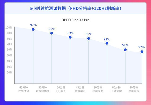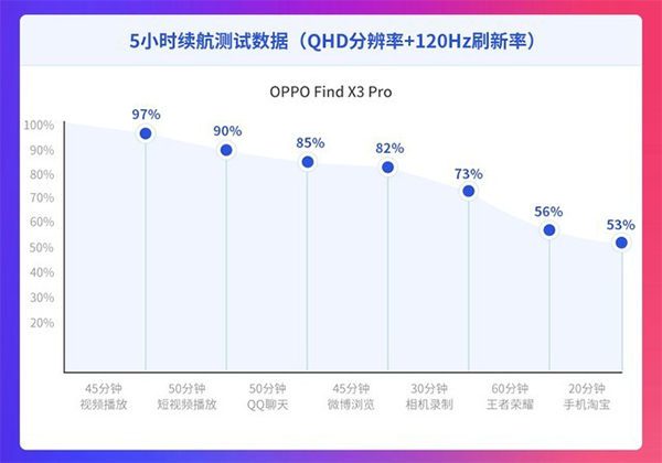 為了檢驗(yàn)2021年上半年發(fā)布的旗艦級(jí)智能手機(jī)的續(xù)航能力,這一次特對(duì)八款正在熱銷的旗艦機(jī)型進(jìn)行了5小時(shí)續(xù)航能力橫評(píng)。在本次橫評(píng)中,選取了大家日常生活中經(jīng)常使用的7種典型應(yīng)用場景,進(jìn)行了總計(jì)5小時(shí)的測(cè)試,從而檢測(cè)各大旗艦機(jī)型的續(xù)航表現(xiàn)。以下為OPPO Find X3 Pro的5小時(shí)續(xù)航能力報(bào)告: