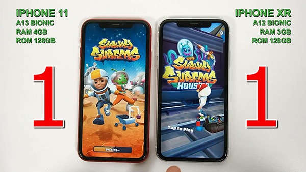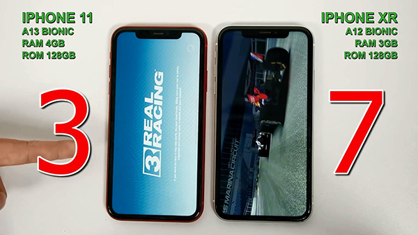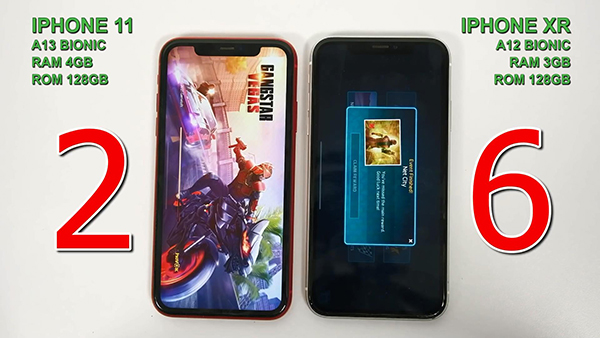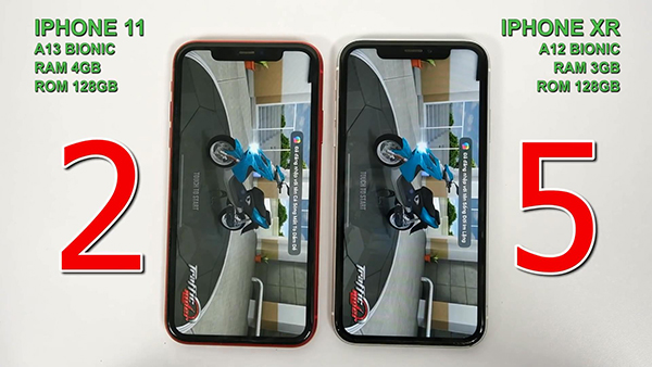 在打開《摩托車》游戲的速度上,iPhone 11和iPhone XR的軟件打開速度保持一致,兩者之間打成了平手。