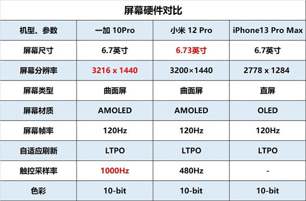 通過對(duì)三款手機(jī)屏幕硬件方面的對(duì)比,我們不難看出一加10 Pro和小米12 Pro都不錯(cuò),屏幕擁有更高的像素。一直以來像素越多,就代表著畫面越精細(xì),同樣的屏幕區(qū)域內(nèi)能顯示的信息也越多,所以在看電影或者是打游戲時(shí)會(huì)為大家?guī)聿诲e(cuò)的觀感體驗(yàn)。此外,一加10 Pro還支持1000Hz極限觸控采樣率,能讓大家在打游戲時(shí)的操作更加跟手,屏幕也會(huì)更加靈敏。