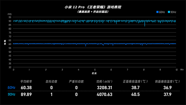 幀率提升到90fps后,手機的負載會有比較明顯的提升,更容易拉開當中的差距。
