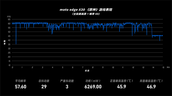 不過小米并不是最會找平衡點的廠商,motodegeX30在這方面做得更極致,以較低的功耗、略高于小米的溫度,換來高達58fps平均幀率、低至29次幀率抖動(3次較嚴重抖動)的最好性能表現(xiàn)。