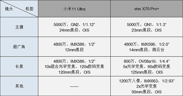 其中不同地方在于,小米11 Ultra的5000萬像素主攝采用了1/1.12英寸三星GN2傳感器,在上半年市場確實(shí)是“安卓之光”,擁有最強(qiáng)的感光優(yōu)勢,同時一顆超長焦鏡頭支持10x混合光學(xué)變焦和120x數(shù)碼變焦,兼顧了遠(yuǎn)攝效果;vivo X70 Pro+的5000萬像素主攝采用1/1.3英寸三星GN1,同樣位列CMOS第一梯隊,次于GN2,感光能力也很強(qiáng),且實(shí)現(xiàn)了四顆鏡頭全防抖,即微云臺+3*OIS光學(xué)防抖,可以說是目前手機(jī)影像防抖方面堆料最猛的機(jī)型。