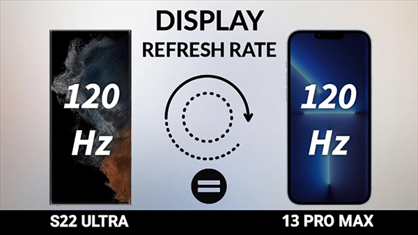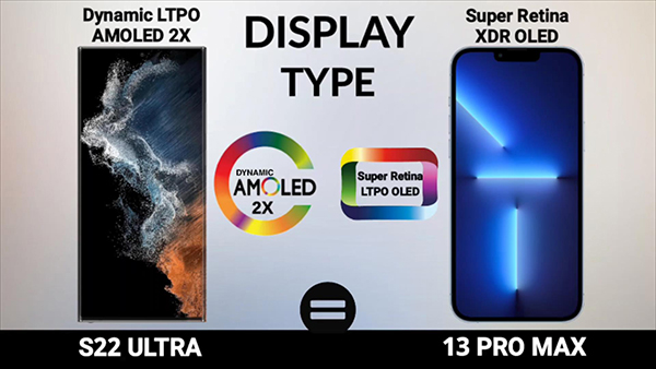 屏幕材質方面,三星S22 Ultra搭載的是LTPO AMOLED 2X材質,iPhone 13 Pro Max搭載的是XDR OLED材質,兩部手機的屏幕材質都非常不錯。三星S22 Ultra和iPhone 13 Pro Max均支持120赫茲的自適應刷新率調節(jié),在這個方面兩部手機都非常不錯。