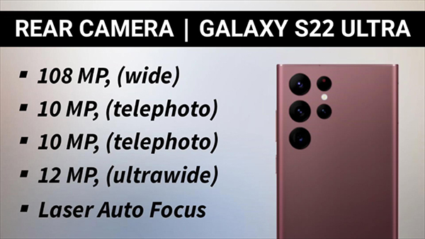 三星S22 Ultra的相機組合,搭載了1200萬像素的超廣角、1.08億像素的主攝像頭、1000萬像素的長焦相機和1000萬像素的潛望式長焦,分別支持3倍和10倍的變焦。