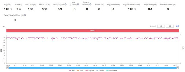 一加10 Pro《王者榮耀》平均幀率為118.3fps