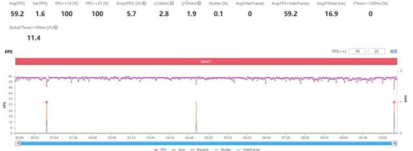 一加10 Pro《和平精英》平均幀率為59.2fps