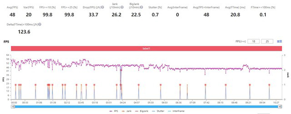 在極限60幀畫質(zhì)下,一加10 Pro平均游戲幀率達(dá)到了58.7fps,小米12 Pro平均幀率只有48fps??梢钥吹剑患?0 Pro比小米12 Pro游戲全程高了10fps,游戲體驗(yàn)更加流暢。