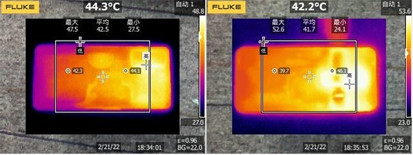 兩款機(jī)型30分鐘《原神》后的溫度 (左Redmi K50電競版 右紅魔7)