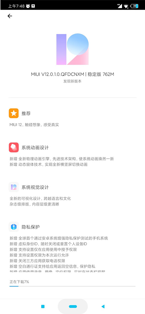 小米CC9 Pro尊享版近日獲推 MIUI 12 穩(wěn)定版更新,版本號(hào)為MIUI V12.0.1.0。此次更新增加了包括全新的系統(tǒng)動(dòng)畫(huà)、視覺(jué)設(shè)計(jì)、隱私保護(hù)等功能。