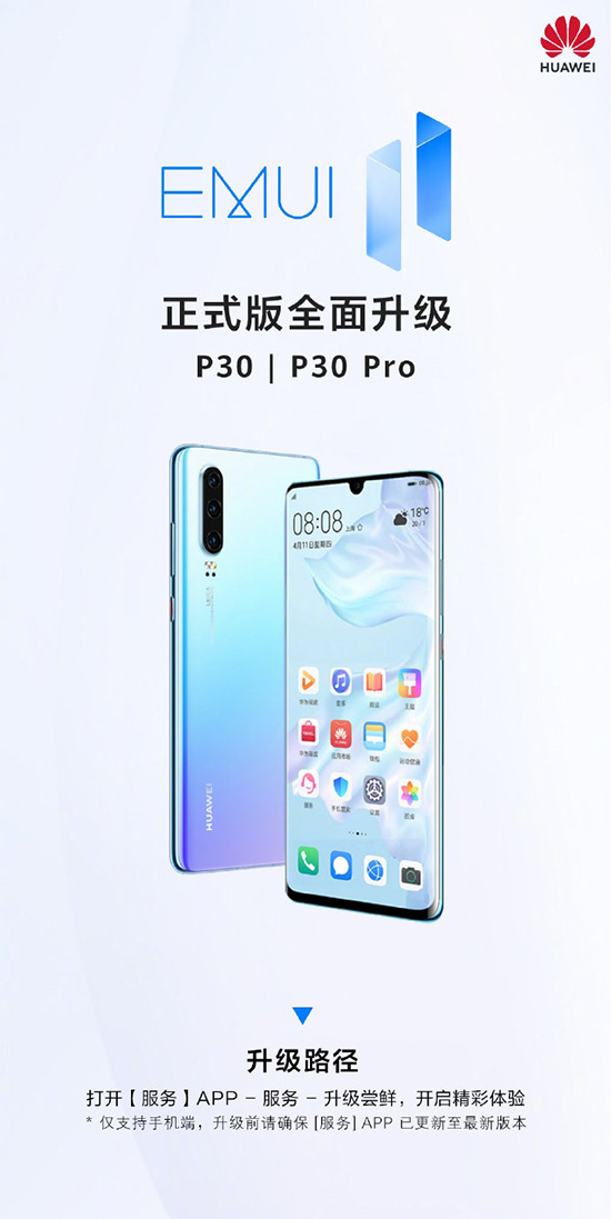根據(jù)華為官方的消息,華為P30和P30 Pro現(xiàn)已全面開(kāi)啟EMUI11正式版升級(jí)。打開(kāi)【服務(wù)】App—服務(wù)—升級(jí)嘗鮮,開(kāi)啟精彩體驗(yàn)。僅支持手機(jī)端,【服務(wù)】App需升級(jí)到最新版本。
