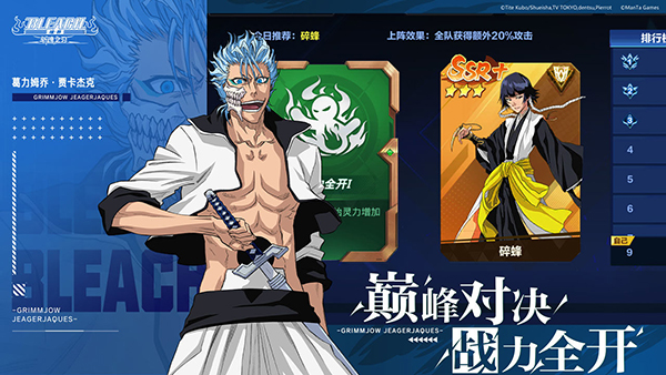 全3D模式立體還原人氣角色,原班聲優(yōu)經(jīng)典CV呈現(xiàn),沉浸式體驗(yàn)動(dòng)畫(huà)經(jīng)典劇情!卍解大招定制化畫(huà)面,品味主機(jī)質(zhì)素原作精髓;特色連攜玩法,多角色互動(dòng)連擊升級(jí);番隊(duì)集結(jié),共同討伐擊殺大虛,靈壓全開(kāi)重燃戰(zhàn)斗熱情!在游戲中,玩家可以招募收集黑崎一護(hù)、朽木露琪亞、日番谷冬獅郎、更木劍八等數(shù)十位原作人氣角色,與之一同面對(duì)各種挑戰(zhàn)、機(jī)遇,尸魂界冒險(xiǎn)由此展開(kāi)!