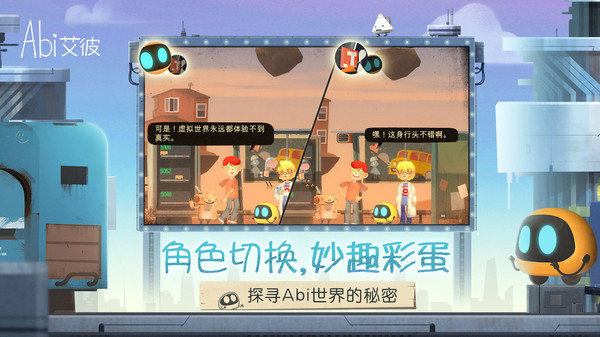 艾彼abi游戲更像是一個(gè)動(dòng)畫小短片,情節(jié)安排,人物設(shè)置與對話都充滿故事性。游戲中不僅有阿比和DD一起旅行探索的朋友之誼,還有人類世界到底發(fā)生了什么,等待解謎的高潮節(jié)點(diǎn),這些設(shè)置都讓游戲充滿可玩性。玩家會(huì)跟隨阿比一起體驗(yàn)機(jī)器人的喜怒哀樂。