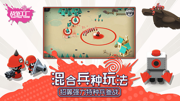 《戰(zhàn)爭工廠》操作模式相比傳統(tǒng)RTS游戲的操控更加自由,在戰(zhàn)斗過程中,玩家只需單指點(diǎn)擊地圖任意位置,即可操控小兵進(jìn)行全場走位移動(dòng),同時(shí)在進(jìn)攻敵兵時(shí),玩家可手繪任意線條形狀,來控制小兵進(jìn)行無限的陣型排列,簡單來說就是一筆畫操作,上手容易,對(duì)小白玩家十分友好。