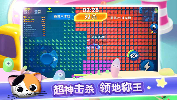《圈地大作戰(zhàn)》年度最受歡迎的、最佳公平的休閑競技手游。這款游戲超好玩、超萌萌噠、超有挑戰(zhàn)性和策略性,玩家一開局游戲,每個(gè)人都化身為萌寵附體,簡直圈到無法釋手、圈到手軟, 真是其樂無窮!
