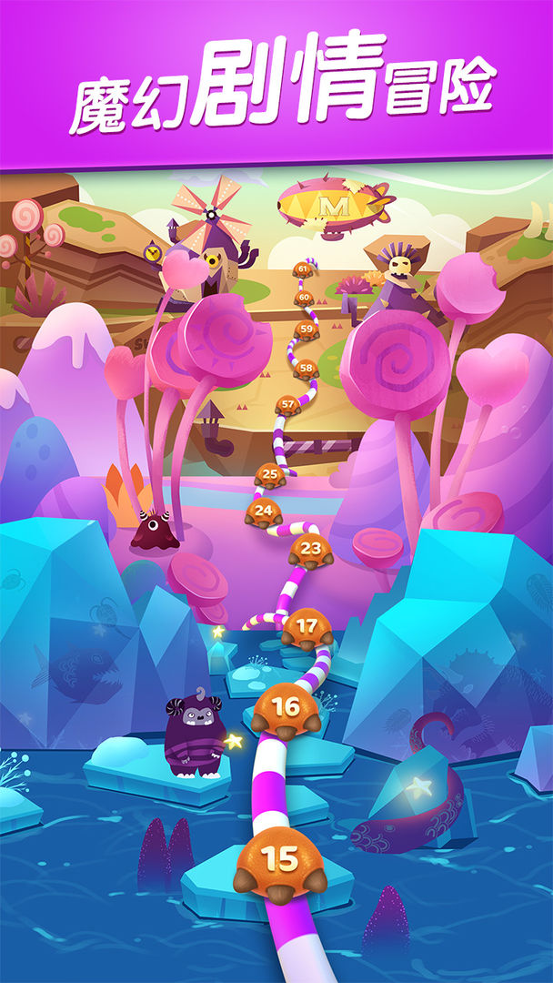 甜點(diǎn)也能當(dāng)怪獸?法棍還能做武器?糖果精靈滿場(chǎng)跑幫你清理障礙,冰龍氣急敗壞地朝你丟冰塊。你還可以幫助曲奇貓收集餅干,給迷路的小矮人指路,和格里克一起去探險(xiǎn)……豐富的主線和副本玩法,讓你在三消過(guò)程中暢游奇妙魔法世界。