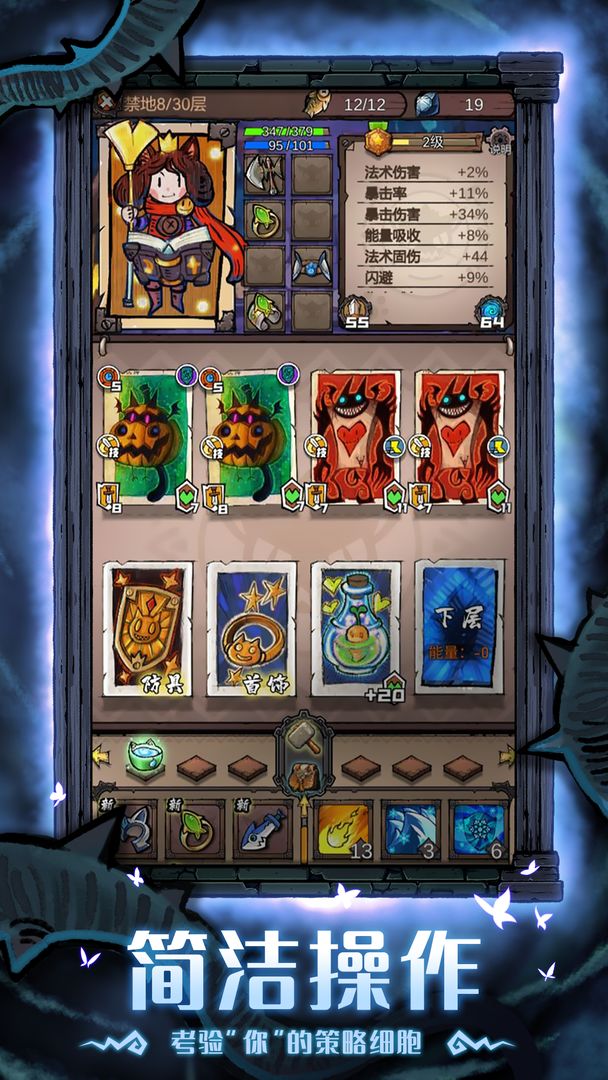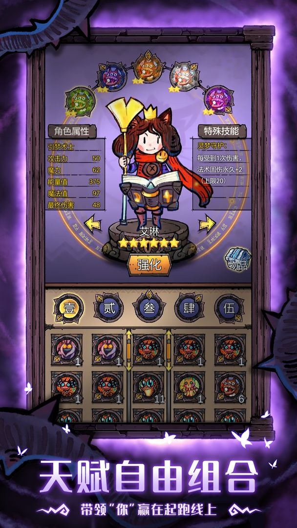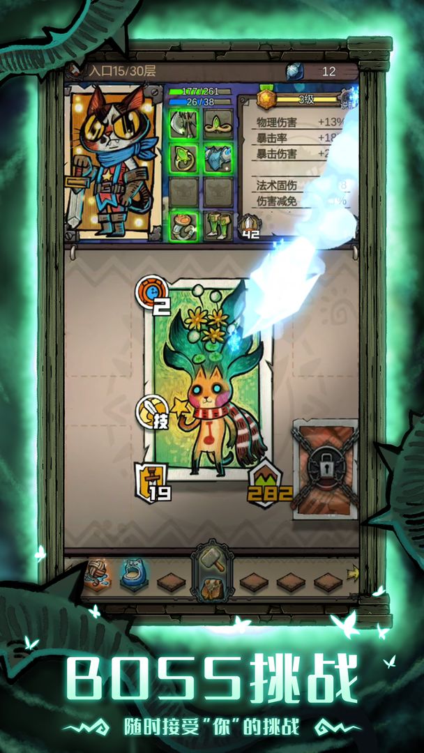 卡牌迷境是一款奇妙冒險游戲,在游戲中玩家將跟隨貓貓一起挑戰(zhàn)這個世界,打敗所有你能看到的敵人,簡單的戰(zhàn)斗給你帶來極致的體驗,還能體驗收集的樂趣。在這個奇妙的卡牌冒險世界,所有的一切都是貓貓頭~請跟隨貓貓頭勇士,去打敗變異的貓咪怪獸、貓眼巨人、狂野稻草貓貓……們吧!肉鴿玩法,極簡戰(zhàn)斗方式!裝備、法術、藥水、神器四種元素進行收集與搭配,輕松單手操作。一起去拯救世界吧!