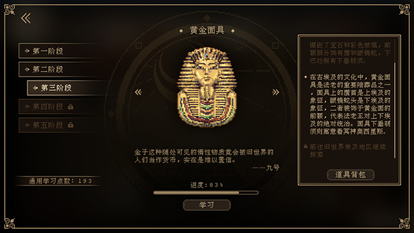 九號博物館游戲是一款休閑好玩的手游,氛圍非常濃厚。游戲中主要以歷史文明為模式背景。玩家需要在其中找到各種有趣的古代遺物,而這些歷史遺物很多都會成為玩家的裝備物品,需要玩家從美術(shù)館探尋其使用的由來,所以這將為玩家?guī)硪粋€一種以自己的方式前所未有的刺激游都安博物館觀后感。