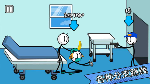 3、簡潔的手繪畫風(fēng),讓火柴人神逃脫游戲玩起來更加的簡單和小清新