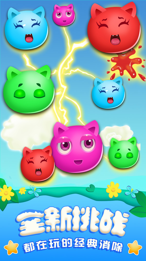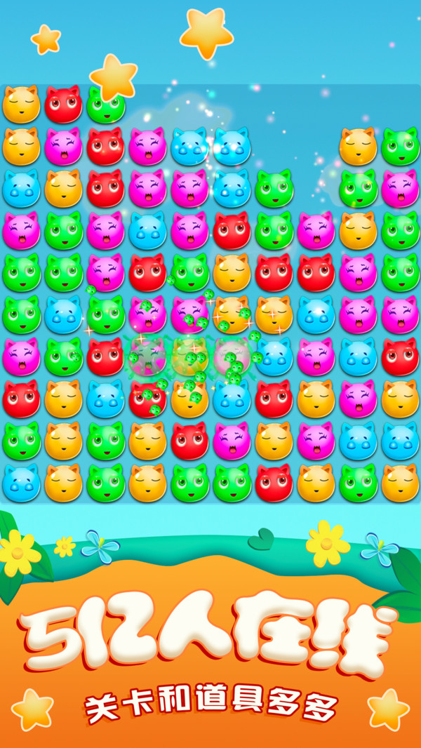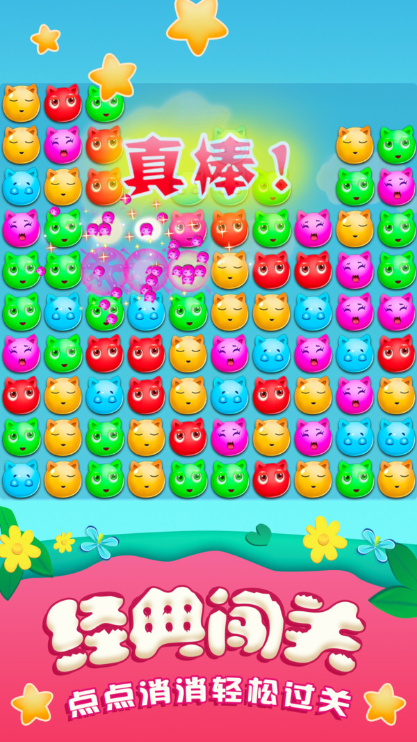 游戲的規(guī)則很簡單:只需點擊兩個或兩個以上顏色相同的萌寵即可消除。