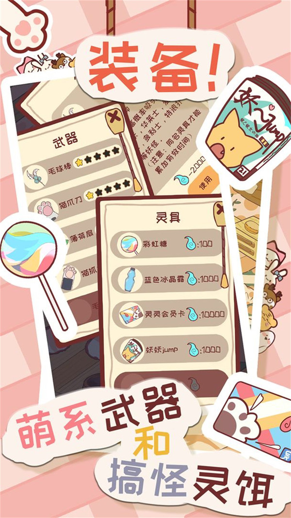 貓咪解憂(yōu)鋪游戲中玩家經(jīng)營(yíng)著一個(gè)小店鋪,主要為憂(yōu)愁和有困擾的玩家解決他們身上的妖靈。每天你的小店都會(huì)來(lái)很多顧客,為他們解決麻煩之后會(huì)付給你一定的籌碼,使用這些獎(jiǎng)勵(lì)可以購(gòu)買(mǎi)和升級(jí)你的武器和靈具,讓你可以擊敗等級(jí)更高的妖靈。每只動(dòng)物都繪制的都很可愛(ài),不論是什么樣的玩家都會(huì)被他所治愈。