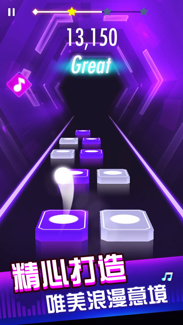 3、豐富的關卡可以體驗,選擇不同的歌曲進行挑戰(zhàn),帶給你不同的樂趣。