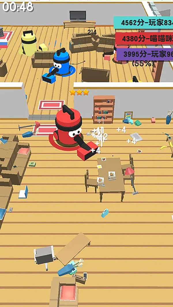 吸塵器大作戰(zhàn)是一款采用了卡通風格的趣味競技多人休閑對戰(zhàn)游戲,游戲的操作十分經典,以吸塵器為主題,玩家將在關卡當中操控一臺吸塵吸進行戰(zhàn)斗。不斷的吞噬其他的物體,能夠不斷的變大,擁有巨大的體型之后,也能夠吞噬同樣大小的物體,在限時關卡中誰最大獲勝。