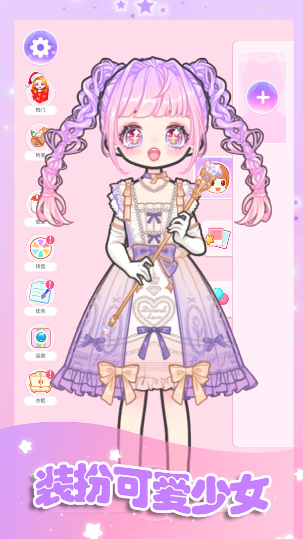 快來裝扮你的時尚少女!這是是一個讓你表達你的時尚個性和創(chuàng)造你自己角色的地方。制作自己的專屬角色,穿著可愛的服裝、引人注目的配飾……只需一個簡單的操作即可將它們添加到你的娃娃上。給你的朋友一個驚喜,釋放想象力并提升您的創(chuàng)意技能!成為時尚專家,為你的娃娃打造驚艷的造型!享受這個換裝所帶來的樂趣!展示你的時尚技能,為你的娃娃搭配最耀眼的服裝!在這個換裝游戲中,你可以自由的探索,發(fā)揮你的創(chuàng)造力!