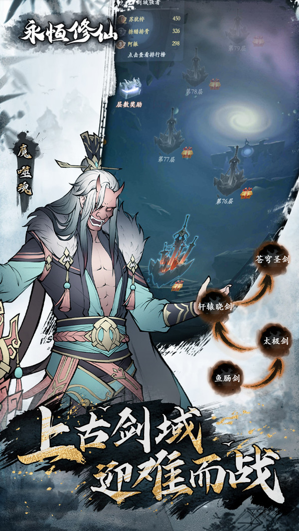《永恒修仙》是款隨心佛系的放置類修仙游戲,少年讓我們圓你個修行成仙夢。 開局選擇好帥氣的角色后,就可以開始您的修仙之旅了哦,在修仙的過程中,您體驗到的可不止是打坐練功、渡劫那么枯燥乏味,在游戲里設(shè)計了各種有趣的玩法: 神兵閣-古今名劍,遠古神器任掌手中,過把手持七尺長劍,仗義走江湖的修行癮; 所謂,器至極致則生靈,作為一款修仙手游,怎么少得了幾個好看劍靈陪伴修行呢,劍靈系統(tǒng)作為玩法劇情支線,即可消除日常無趣放置過程喲! 劍陣系統(tǒng)等等,三言二語是介紹不全啦~只能說,您不是一個人在修行,上古神器和劍靈的陪伴,你肯定可以一日筑基,三日突破元嬰,然后挑戰(zhàn)各種上古兇獸,尋得凡人成仙之法。這將會是一場驚險刺激的修仙之旅,持續(xù)關(guān)注我們,將持續(xù)更新更多小秘籍內(nèi)容噢。